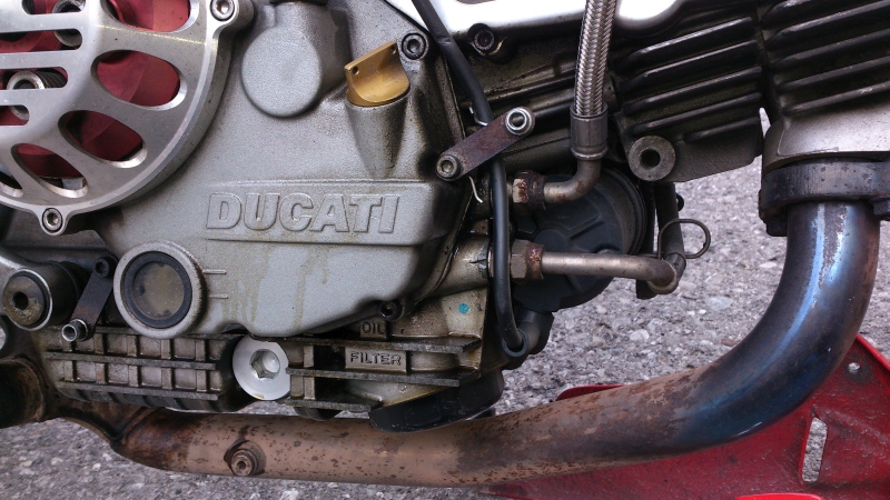 Am Abend nehme ich den Seitendeckel ab und halte mit meinem Freund und Doc-Schrauber telefonische Rücksprache - W-LAN und WhatsApp sei Dank, sogar mit Bildern. Diagnose: defekter Simmerring an der Kurbelwelle! Also unterbrechen wir den Urlaub nochmal für einen kurzen Zwischenstopp in der Werkstatt...