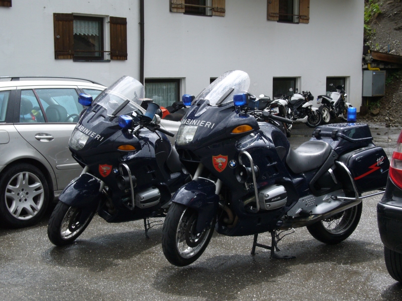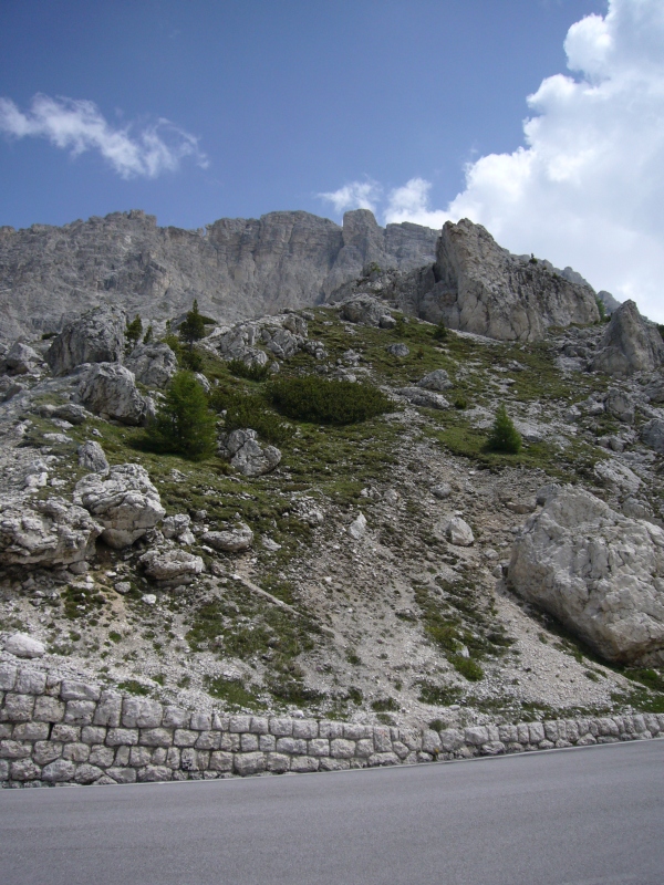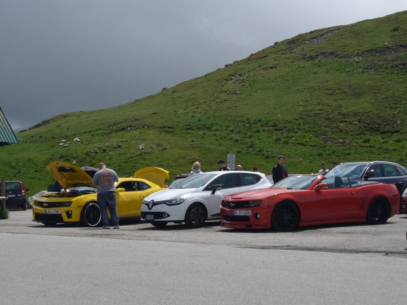 Die italienischen Straßen trocknen recht schnell wieder ab und wir machen uns wieder auf den Weg über den Passo di Valparola und Falzarego zum Passo di Giao. Da glauben doch tatsächlich ein paar PS-Monster (akutelle Camaro, Challenger und Mustang) sie könnten schneller hoch als wir - da haben sich die Kollegen geschnitten!
