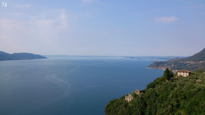 Blick auf den GardaseeNach einem ausgiebigen Frühstück starten wir über die Inntal-Autobahn bis hinauf zum Brenner. In Sterzing biegen wir ab auf den Jaufen-Pass nach Meran. Weiter über Fondo und den Mendel-Pass nach Eppan, wo wir etwas verspätet die erste Pizza genießen. Am Kalterer See vorbei geht's auf der Weinstraße bis Mezzolombardo und von dort hinauf in die Berge und an den Molveno-See. Hier sind die Straßen wenigstens noch kurvig und leer, was sich dann auf dem letzten Stück ab Riva durch die Tunnels am See entlang drastisch ändert. Entschädigt werden wir dafür mit dem paradiesischen Blick über den Gardasee, bei dem das Feierabend-Bier gleich nochmal so gut schmeckt.