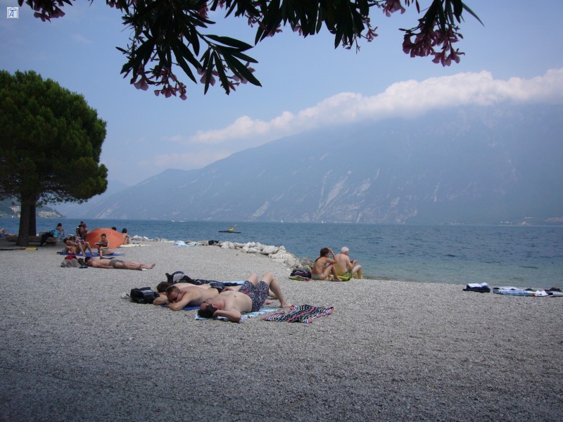 Am Strand in LimoneDer Sonntag ist traditionell unser Ruhetag. Während alle anderen sich auf den Heimweg aus den Pfingstferien machen, kurven wir über die Tremosine Bergstraße nach Limone. Dort genießen wir einen Eisbecher an der ruhiger werdenden Ufer-Promenade, erfrischen uns mit einem (kurzen) Bad im eisigen See und bei einem Spritz. Auf dem Rückweg noch ein Feierabend-Bier eingekauft, und später im Paradiso dann noch ein ausgiebiges und grandioses Abendessen. Da kann auch ein später aufziehendes Gewitter das "Dolce Vita" Gefühl nicht mehr trüben!